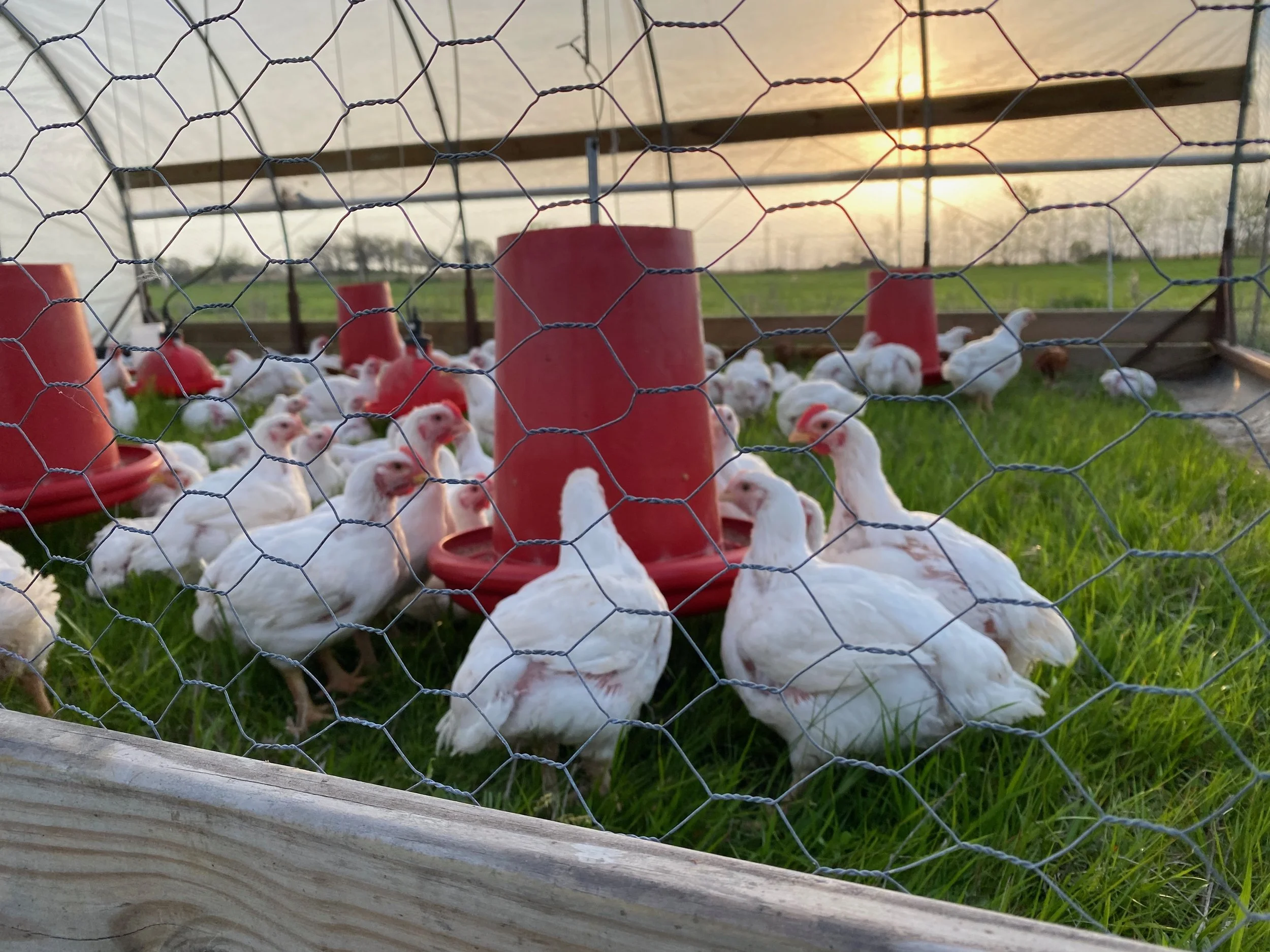 We raise chicken outdoors on pasture, here in Minnesota that means that we grow them when the grass is green and seasonally. We don’t grow in barns, except for the first couple of weeks when they are in the brooder. After they are old enough to transition to the pasture, they are raised in a floorless shelter that is moved every day. It’s not just what we do—it’s how we do it that sets us apart.